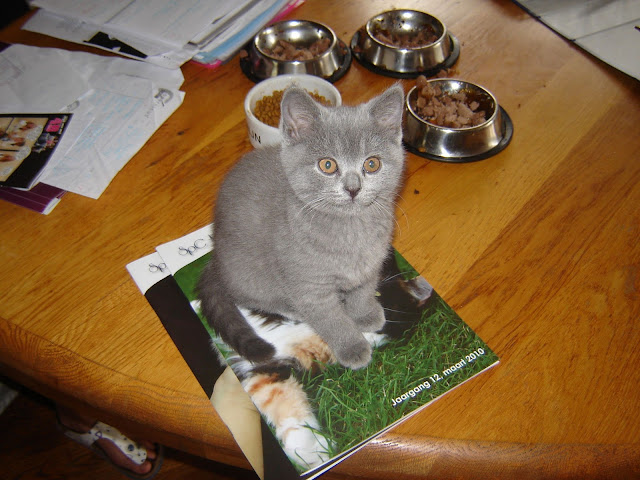 Bo is graag aanwezig waar je bent, dat vertelde ik al, dus terwijl ze net gegeten had terwijl Lisa haar schoolspullen aan het uitzoeken was, ging zij op de kattenverenigingtijdschriften zitten.