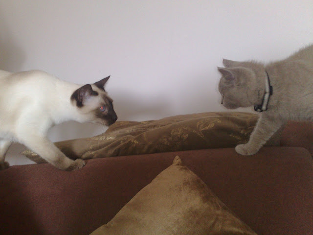De andere katten blazen wel,maar dat is meestal na een dag of 2 welover...de hondjes vallen mij ook mee ze zijn heel rustig