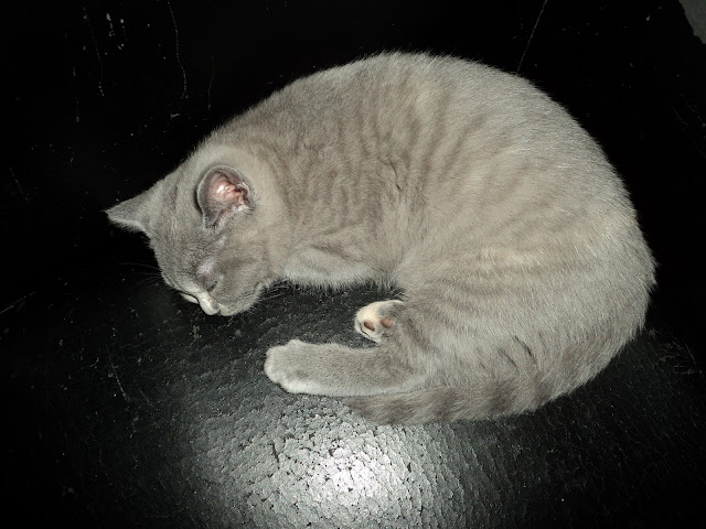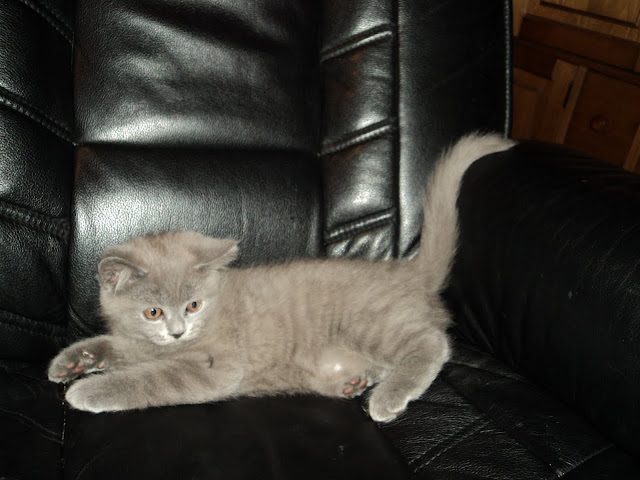 Een blauwe kater: (zonder lak omdat we ze zo toch wel uit elkaar kunnen houden) Hij begon op 90 gram bij zijn geboorte maar inmiddels is hij toch ook al 117 gram. Een uitstekend gewicht dus ook.