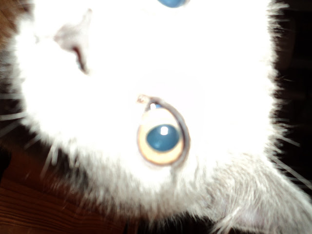 En hoewel het licht hier anders doet vermoeden, deze kater is ook blauw. De flits maakt het alleen alsof we hier ook met een lilacje te maken hebben. Hij is echt blauw.