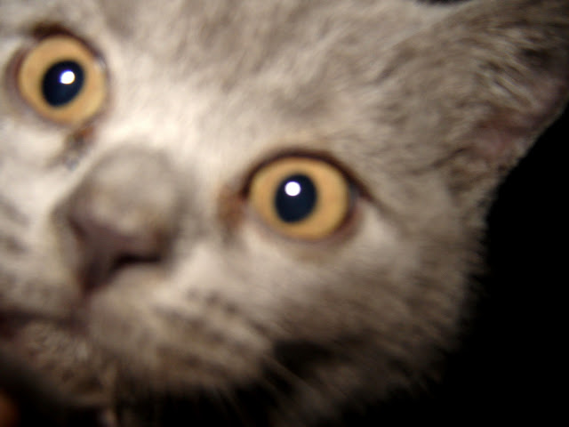 Vervolgens toen ik dacht om dan maar mijn hoofd in de krabton te steken zodat ik een leuke slapende Ollie op de foto kon nemen, was hij ineens wakker, en zat hij tegen de camera aan.