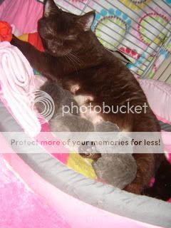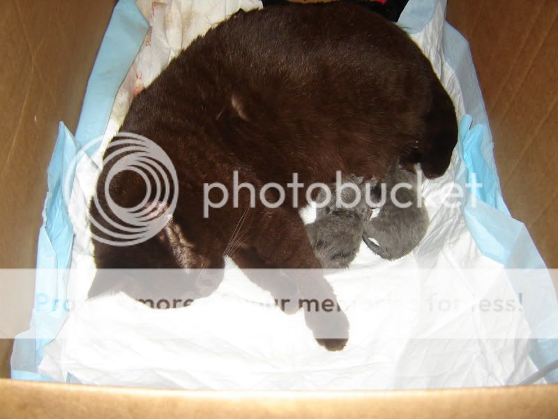 Onderstaande foto is tijdens de bevalling gemaakt, er waren toen twee kittens geboren